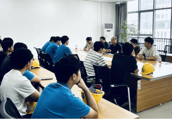 随后,调研团队深入企业总装车间进行实地参观。整洁有序的生产环境、高度自动化的装备生产线、严谨细致的工艺流程给老师们留下了深刻印象,双方就生产技术、工艺创新、人才需求等方面进行了现场交流。