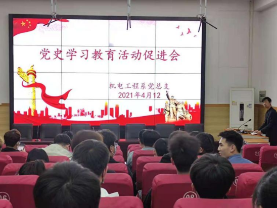 4月12日晚,机电工程系在北教三阶举行“党史学习教育促进会”。此次党史学习教育由党总支书记王建军主持,全体辅导员、各班入党积极分子参加。