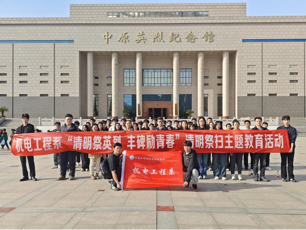 为悼念革命烈士,缅怀先烈的丰功伟绩,教育师生继承革命先烈的光荣传统,弘扬民族精神,继承先烈遗志,在我国传统祭奠日清明节来临之际,机电工程系组织师生开展“清明祭英烈,丰碑献青春”的清明祭扫活动。3月28日下午机电工程系党总支副书记王远志、辅导员老师、校国旗班以及学生代表共50人赴郑州烈士陵园参加向革命烈士纪念碑敬献花篮仪式并前往中原英烈纪念馆参观学习。